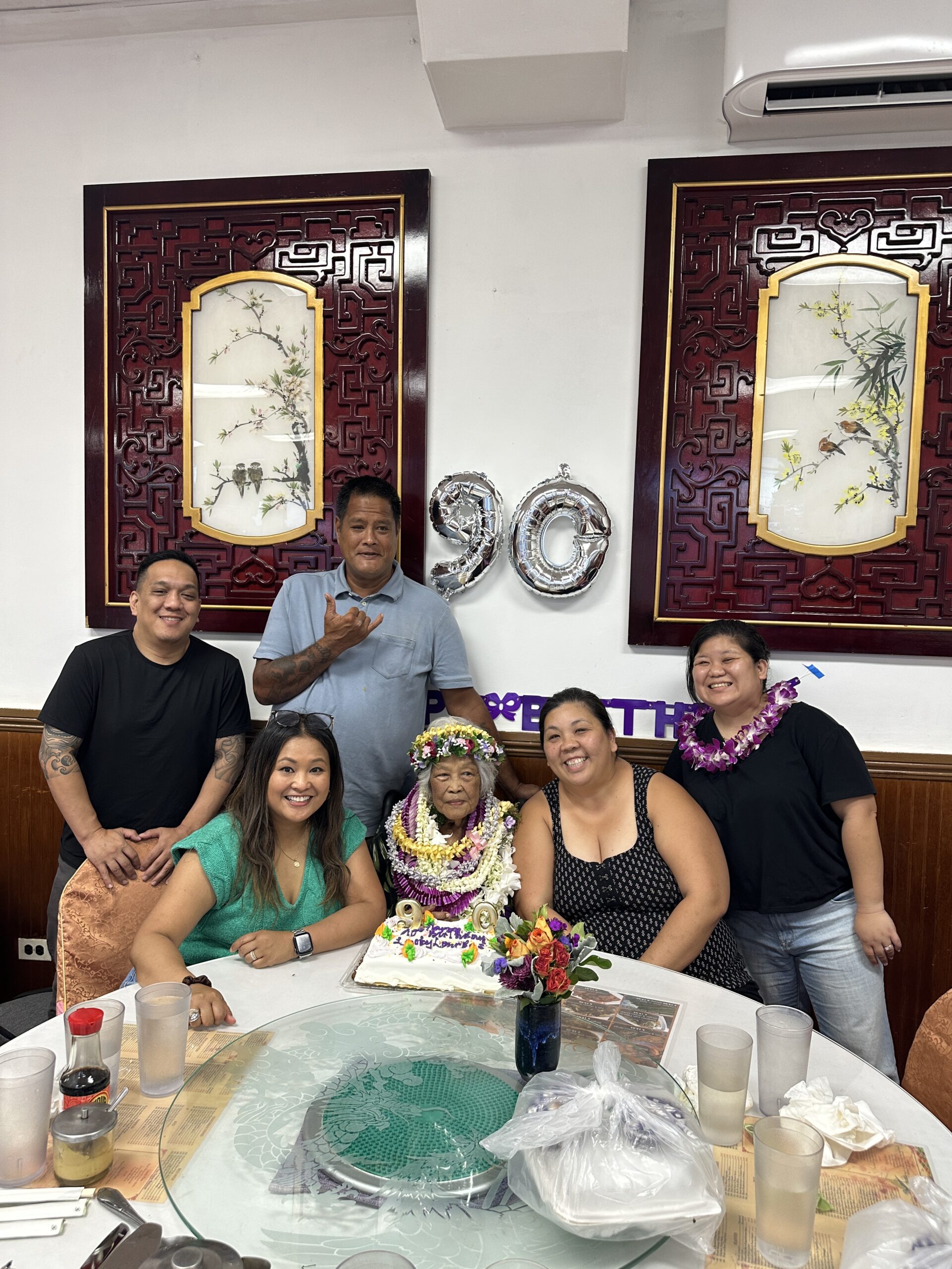 Originally from Santiago, Ilocos Sur in the Philippines, Lourdes moved to Hawaiʻi at the age of 11 with her mother and siblings. The eldest of nine children, she worked on the plantations on O’ahu, where she met the love of her life, Catalino Reyes Balmilero (deceased August 9, 2010). The two married when she was 16 years old and built a partnership grounded in devotion, perseverance, and love.
